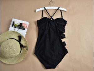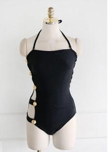 チューブトップ ホルターネック ブラックカラー サイドデザイン ゴールドボタン プチプラ 海 プール 夏 セクシー