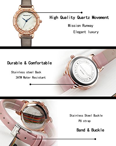 - Chic crystal shell dial , pretty crystal gold alloy watch case, solid blue baton-shape hands, comfortable leather band. The watch make you more attractive. Perfect gift for wedding, party, festival, such as Christmas, Thanksgiving Day etc.