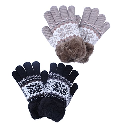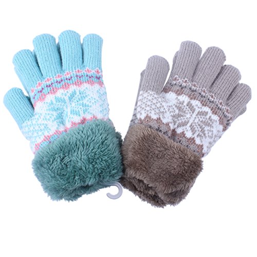 | 2Pairs Kids Boy Girl Warm Winter Gloves Mittens Fleece Lining Snowflake Design |