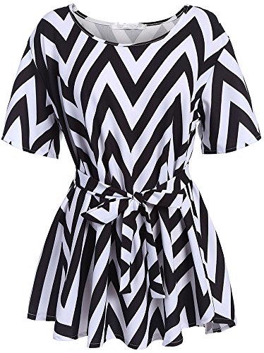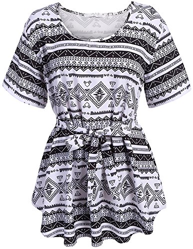 Short sleeve tunic top with belt , features boat neck and 4 style print: Chevron, Aztec, Polka Dot and Floral.
