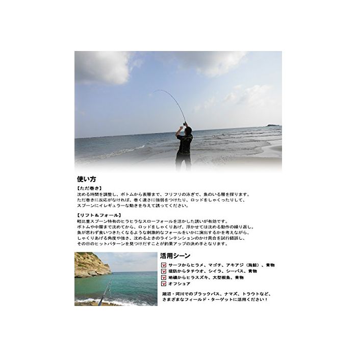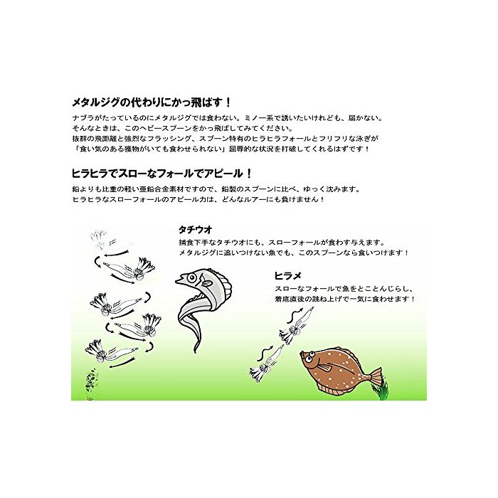 경비중 합금 소재이기 때문에,폴은 슬로우.수중을 떠돌게 해 헤엄치 #이라면,연제 스푼에는 패하지 않습니다!메탈 지그에 뒤쫓을 수 없는 시 버스(sea berth),지해변에서의 야채《히라스즈키》,서프의 넙치 아키 전갱이,앞바다의 후카바에 숨어 있는 대형근 어등,여러가지 씬 타겟에 활용해 주십시오!