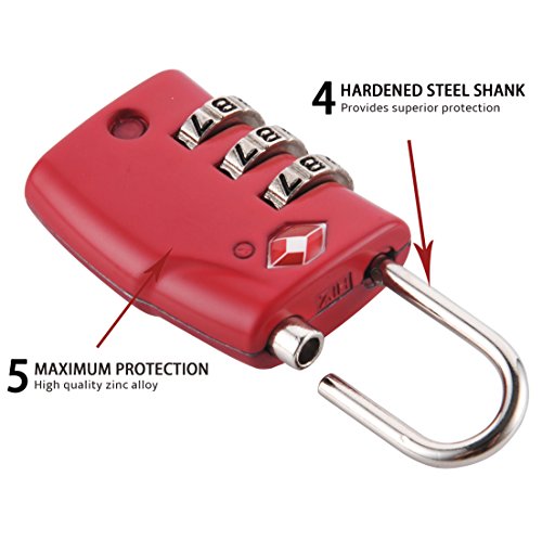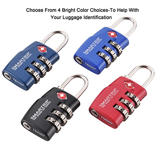 Smartrip TSA Lock Heavy Duty 3 Digit Combination Luggage and Travel Padlock in Assorted Colors