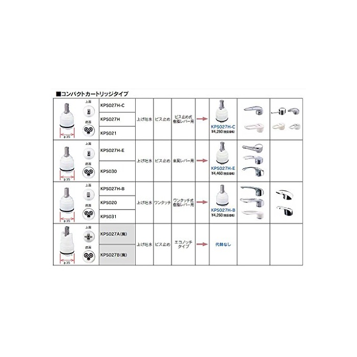 KPS027H/KPS027H-B/KPS027H-C/KPS027H-E는 각각 호환성이 없기 때문에 대응 수전을 확인해 주십시오
