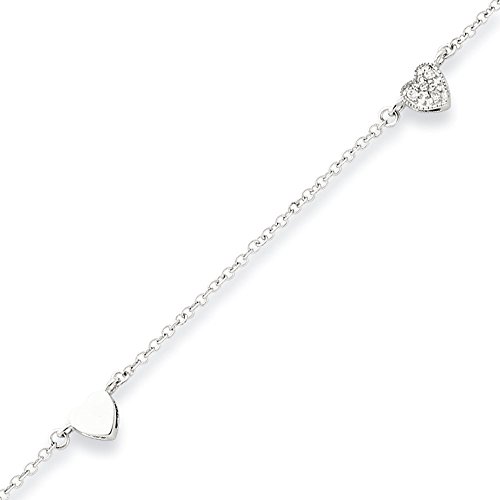 -. Binding : Jewelry -. Brand : West Coast Jewelry -. Department : womens -. Feature : Made in China / Arrives ready for gifting. Free gift packaging included. / Shop with confidence. West Coast Jewelry has been a trusted seller for over 7 years and is dedicated to excellent customer service. Your satisfaction is 100% guaranteed. -. Label : West Coast Jewelry -. Manufacturer : West Coast Jewelry -. Model : QAU-QG2790-9 -. MPN : QAU-QG2790-9 -. PartNumber : QAU-QG2790-9 -. ProductGroup : Jewelry -. ProductTypeName : FASHIONNECKLACEBRACELETANKLET -. Publisher : West Coast Jewelry -. Studio : West Coast Jewelry -. Title : Sterling Silver Polished and Cubic Zirconia Hearts Anklet with 1 Inch Extender - 9 Inches Long