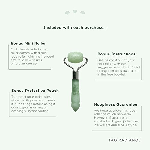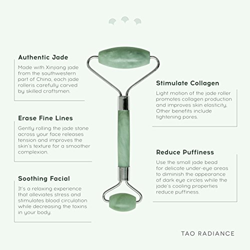 -. Title : Tao Radiance Face Massage Real Jade Roller for Removing Wrinkles, Puffiness Under Eyes, Fine Lines and Dark Circles with Bonus Mini Jade Roller, Bonus How-To Booklet, and Bonus Pouch