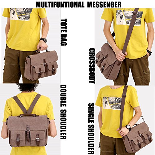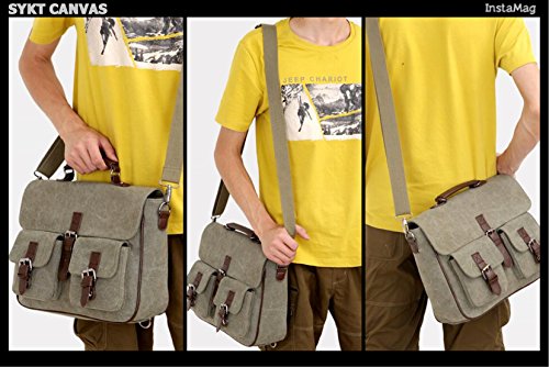 -. Brand : SYKT -. Department : men -. Feature : Quality Cotton Canvas,decorated with genuine leather / Size:10.6''x4''x9.5''inches(LxWxH),Weight:0.98lb / Decorated with leather and buckle,vintage and chic. / YOU CAN CARRY IT IN 4 WAYS:TOTE BAG,BACKPACK(RUCKSACK),CROSSBODY,SHOULDER BAG / Small&durable:you can put ipad,wallets,cellphone,books,etc into it. -. Model : sykthandbags-19 -. ProductGroup : Apparel -. ProductTypeName : LAGE -. Title : SYKT Business Messenger Bag Canvas Tote Bag Classic Buckle Briefcase
