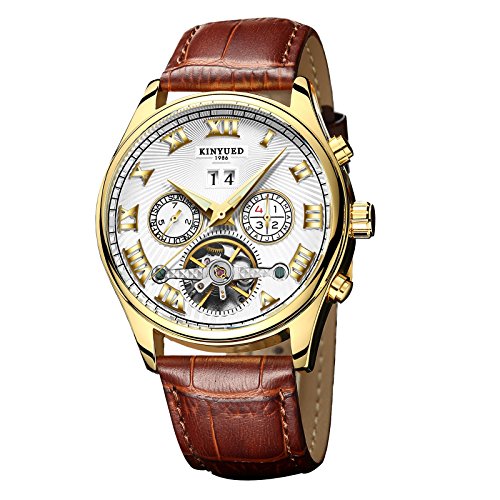 -. Feature : IPG plating stainless steel case & crown+mineral glass set by glue plating blue film / Original Tourbillion automatic mechanical movement + 25 pcs stone / ITALY genuine leather band / Water resistant:3ATM / automatic movement function:time / date /week /month