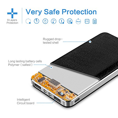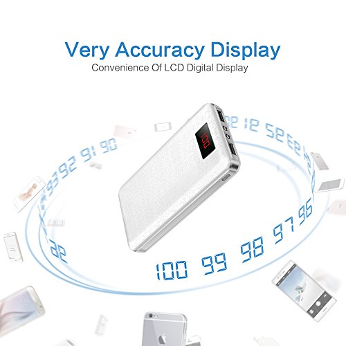 -. Feature : Sorry! Not making a hunk of bricks for self-defense. But the power bank is pocket-size. You can store it in your pocket. / However, powerful as it is. With 20000 mah large-capacity, 10 charges for your phone. Too incredible? But true. / Sorry for not being sly. LCD display that accurately shows the remaining power, making the game of guessing power nonsense. The build-in light also makes the dark night no mystery. / Meanwhile, we also want to save you lots of time. Two USB ports output 3.1A, makes the charging time half. Charge your phone within only 1.5 hours. / Sorry for coming too late to you. We spend too much time in developing smart security chip and polymer battery with high quality to protect you and your devices better.