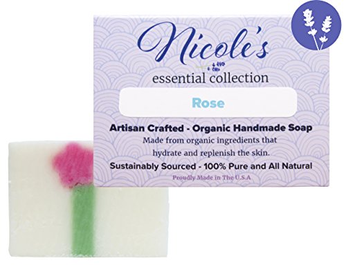 -. Title : Rose Essential Oil Infused 100% Natural & Organic Bar Soap with Shea Butter, Coconut Oil, Grapeseed Oil, Jojoba Oil, Mica and Rose Water. Face Soap, Body Soap for Men and Women - Made in the USA