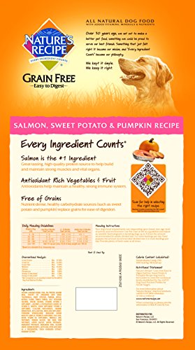 -. Binding : Misc. -. Brand : Nature's Recipe -. Feature : Salmon is the number one ingredient / Complete and balanced grain-free dog food / Dry dog food with added vitamins for total health / No corn, wheat, artificial preservatives colors or flavors -. Label : Nature's Recipe -. Manufacturer : Nature's Recipe -. Model : DMF-333 PA -. MPN : DMF-333 PA -. PackageQuantity : 1 -. PartNumber : DMF-333 PA -. ProductGroup : Pet Products -. ProductTypeName : PET_SUPPLIES -. Publisher : Nature's Recipe -. Studio : Nature's Recipe -. Title : Nature's Recipe Grain Free Dry Dog Food