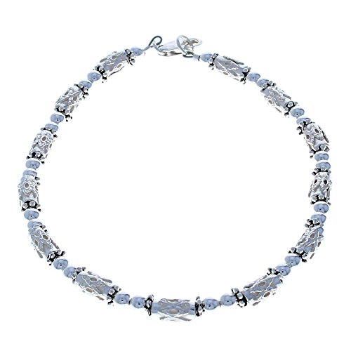 -. Title : Sterling Silver Ladies Beaded Anklet with Daisies