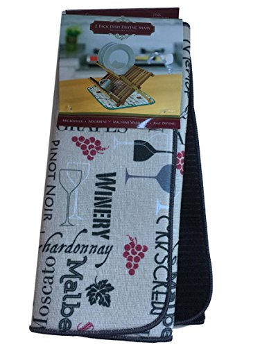 -. Brand : Nantucket Home -. Color : Brown -. EAN : 0686912654069 -. Feature : Made of polyester / Wine graphics with solid reverse. / Superior absorbency, it holds 4 times it weight in water. Also it can be used under appliances to protect your counter from scratches. / You receive 1 reversible drying mat and 1 coordinating sold mat. / Measurements: 15"W x 20"L -. Label : Nantucket Home -. Manufacturer : Nantucket Home -. Model : 50308 -. PackageQuantity : 2 -. ProductGroup : Kitchen -. ProductTypeName : KITCHEN -. Publisher : Nantucket Home -. Size : 15" x 20" -. Studio : Nantucket Home -. Title : Absorbent 2-Pack Wine, Chardonnay, Shiraz, Merlot Graphic Drying Dish Mat 15" X 20" -. UPC : 686912654069