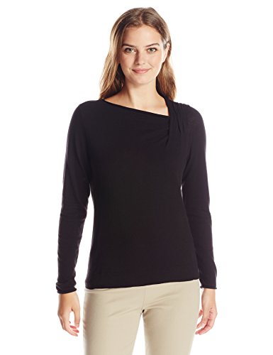 Simple knit top updated with an asymmetrical neckline.