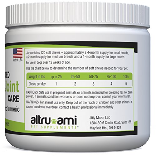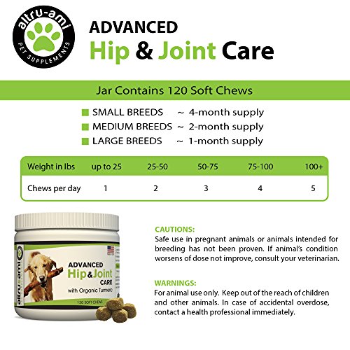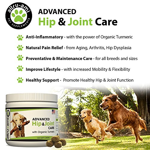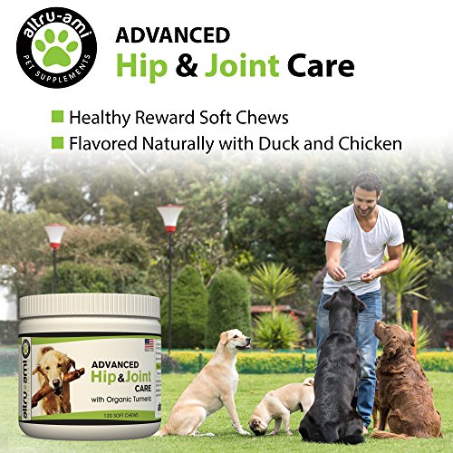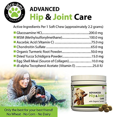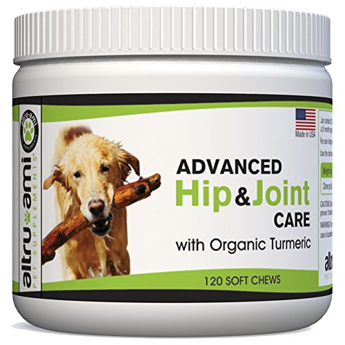 -. Title : MSM Glucosamine for Dogs, Advanced Hip and Joint Supplement, Organic Turmeric, Chondoritin - Dog Arthritis, Hip Dysplasia Pain Relief and Joint Health -USA Made by Altru-Ami - 120 Soft Chewable Treats
