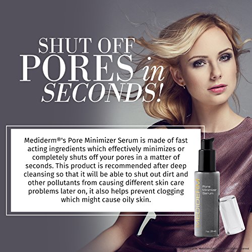 INSTANTLY MINIMIZES & REFINES PORE SIZE - Suffering from oily, shiny skin, clogged pores and acne prone skin? Mediderm's Minimizer Serum will instantly minimize and tone pores to prevent & treat these skin care problems - while tightening your skin.
