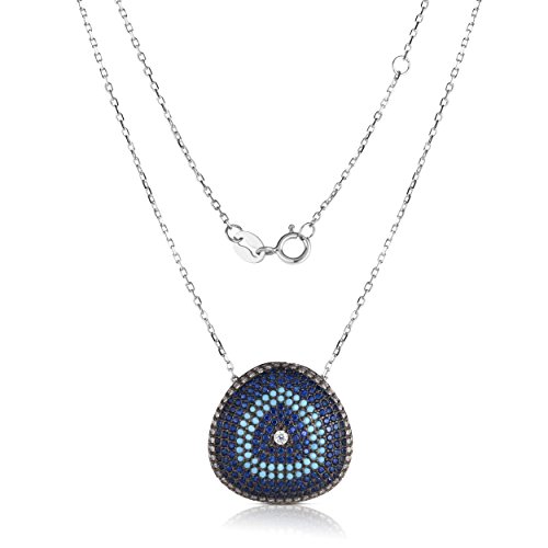 -. Binding : Jewelry -. Brand : Unique Royal Jewelry -. Color : Silver -. Department : womens -. Feature : 925 Solid Sterling Silver Nano Pendant with Turquoise/Created Blue Sapphire/ Cubic Zirconia Cluster Pendant Necklace. / Necklace is adjustable to length of 16", 17" or 18" to accommodate Comfort and personal style. / Chain is 1.2mm Cable Link. Total Weight of Sterling Silver is 3.59 gr. / 2.50 Carat Total Weight of Combined 306 stones pave set. / Elegant Gift Box Included. -. Label : Unique Royal Jewelry -. Manufacturer : Unique Royal Jewelry -. ProductGroup : Jewelry -. ProductTypeName : FASHIONNECKLACEBRACELETANKLET -. Publisher : Unique Royal Jewelry -. Studio : Unique Royal Jewelry -. Title : 925 Solid Sterling Silver Nano Trillion Necklace with Adjustable Length 16"-18"