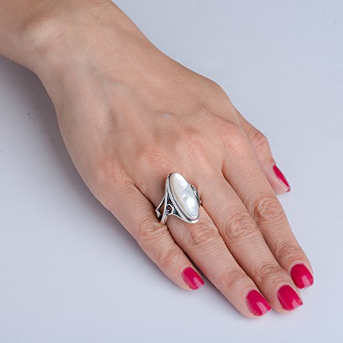 -. Binding : Jewelry -. Brand : Carolyn Pollack -. Department : womens -. Feature : Sterling silver elongated ring / White mother of pearl gemstone / Ring measures 1" long / Designed and crafted in America with gemstones from around the world / An elongated oval white mother of pearl flatters the hand with this bold silver in a comfortable design. -. Label : Relios -. Manufacturer : Relios -. Model : cp7-3817-082-xx -. MPN : cp7-3817-082-xx -. PartNumber : cp7-3817-082-xx -. ProductGroup : Jewelry -. ProductTypeName : FASHIONRING -. Publisher : Relios -. Studio : Relios -. Title : Carolyn Pollack Sterling Silver & White Mother of Pearl Elongated Ring