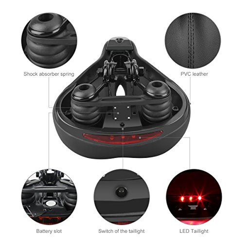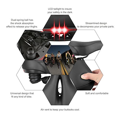 Dual-spring and streamlined design - Double spring rubber ball suspend in the bottom of bicycle seat which has a strong shock absorption effect. It may release your thighs and gives them a better protection. The streamlined design make it more comfortable and is better to protect your private parts.