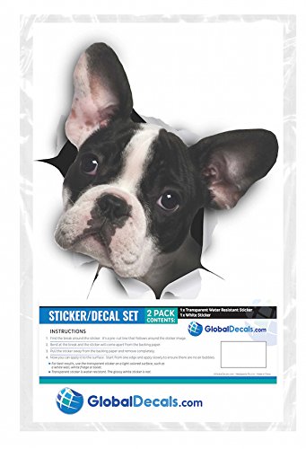 Global Decals 3D Dog Stickers - 2 Pack - Black and White French Bulldog Stickers for Wall, Fridge, Toilet and More - Retail Packaged Frenchie Stickers