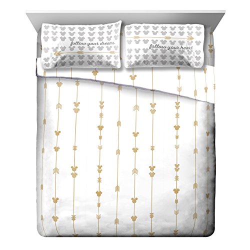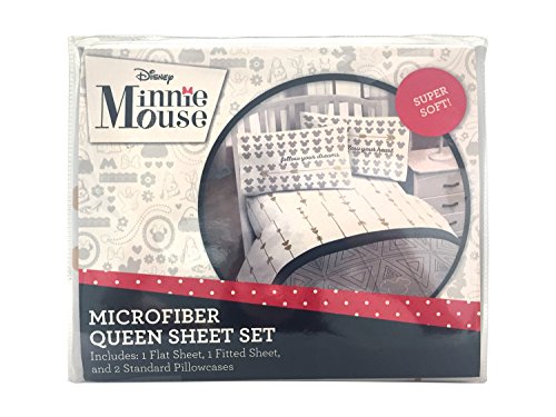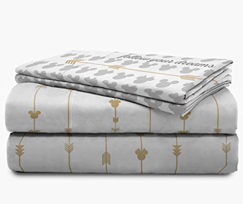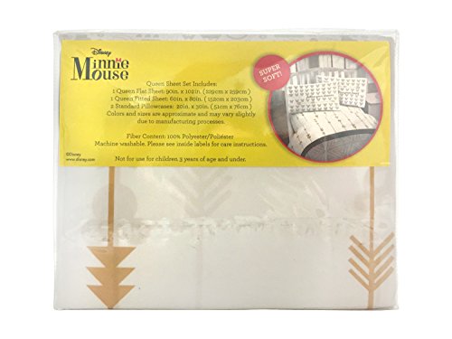 Product Description Transform any child's bedroom with a Disney Mickey and Minnie 'Gold Arrow" super soft queen microfiber sheet set. This Disney bedding sheet set will make any child smile. Each 4 piece, super soft microfiber queen sheet set includes a fitted sheet, flat sheet and two standard reversible pillowcases. The bold colors and exciting design will enhance the existing decor of any kid's or toddler bedroom. Fitted sheet measures 60" x 80", flat sheet measures 90" x 102" with two 20" x 30" standard pillowcases. Decorative bedding features the loveable Disney icons Mickey Mouse and Minnie Mouse. 100% polyester. Easy care, machine wash cold, tumble dry low. Imported 0