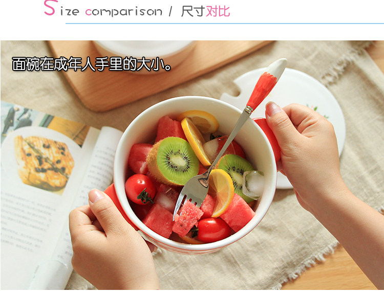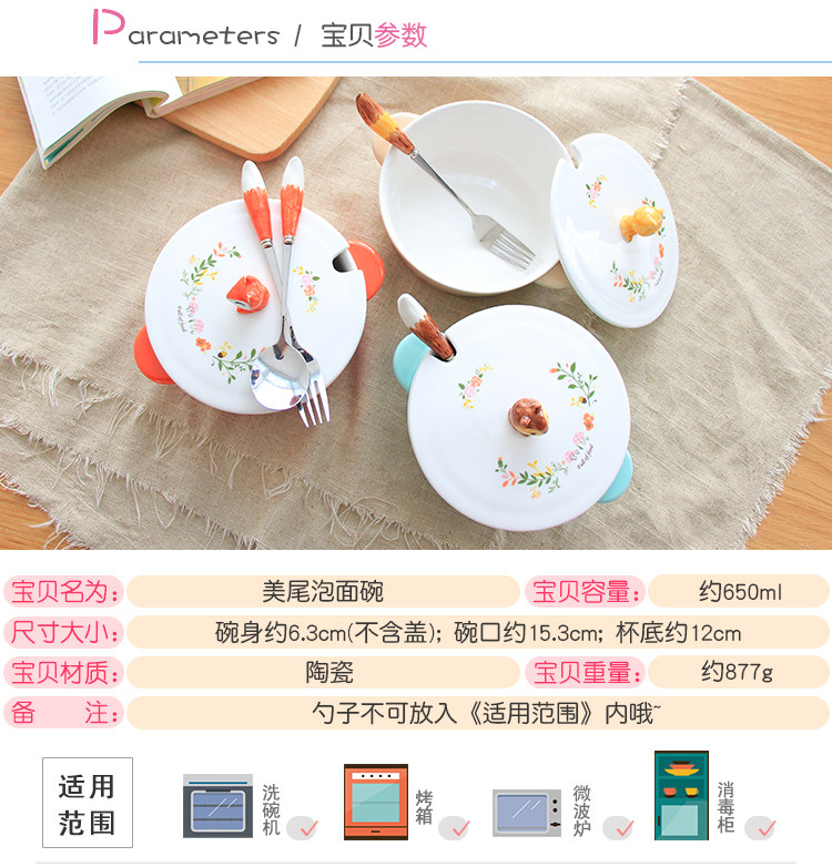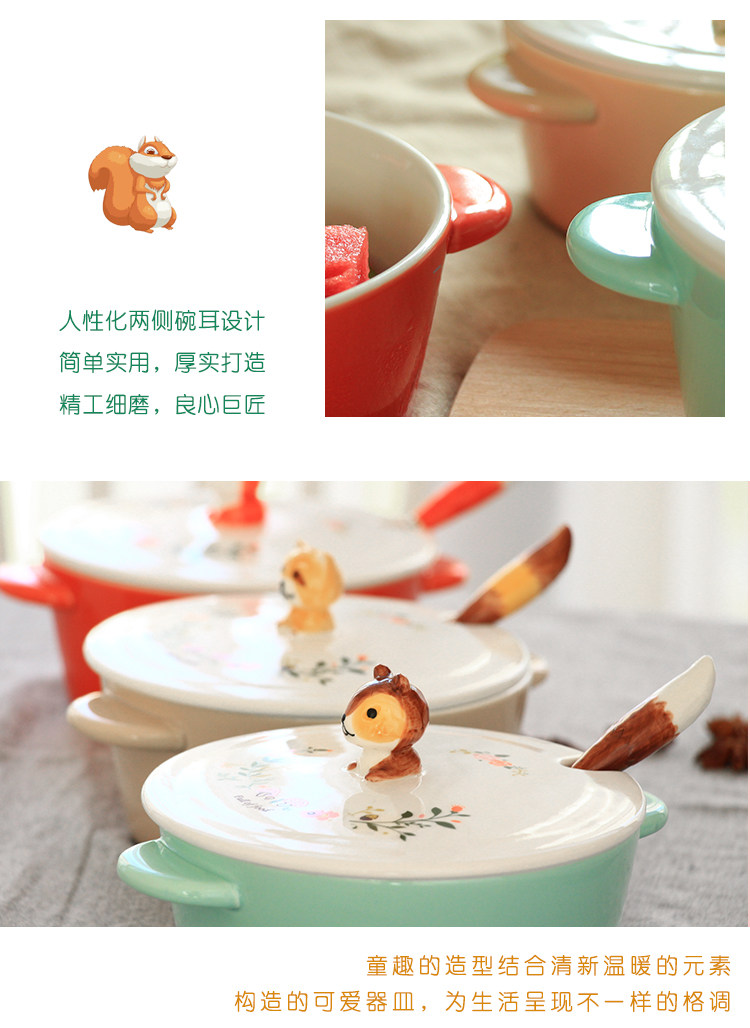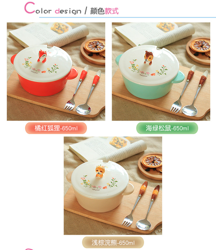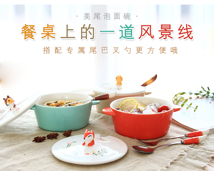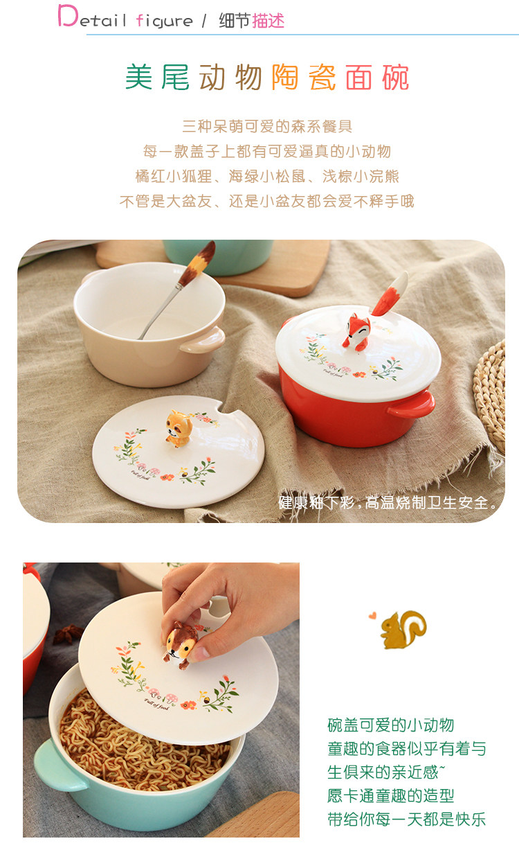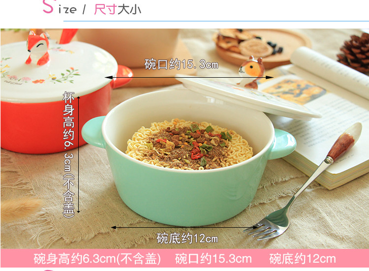 中式彩绘陶瓷动物泡面神器宿舍学生可爱面碗带盖饭碗大号双耳汤碗