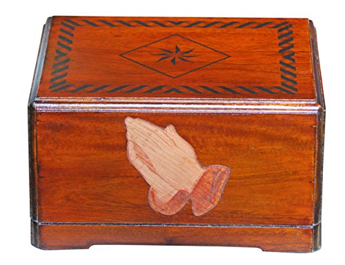 - This urn features cherry wood praying hands onlay