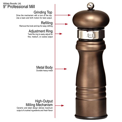 William Bounds, Ltd. 04837 Professional 8" Heavy Metal Pepper Mill, 8 inch, Warm Graphite
