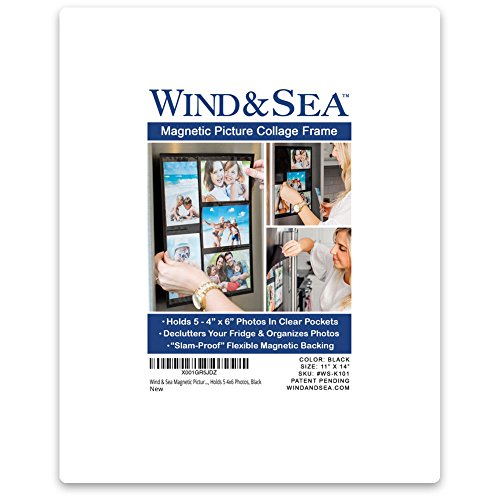 Magnetic Picture Frame for Refrigerator Holds 5 4x6 Photos Collage Frame, Black