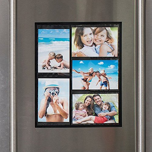 - 1 - Magnetic Picture Collage Frame in Black - Display Holds Five 4 x 6 Photos For A Total of 5 Pictures