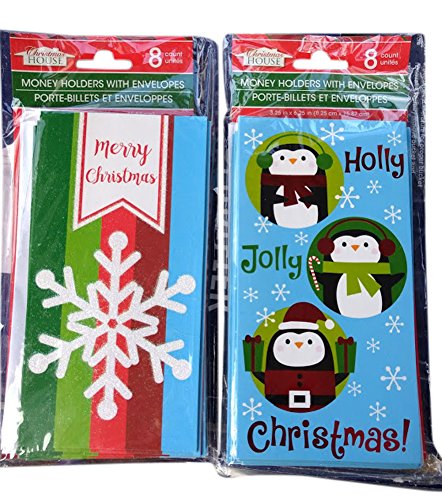 (Christmas House)/Stationery Party Supplies/Gift Wrapping Supplies/DIRECT FROM USA/Snowflake and Penguins Christmas House Money Holder Cards With Envelopes 16 count, 2 packs of 8...