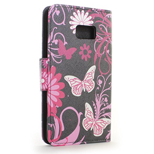Galaxy S6 Edge+ Plus Case, CoverON® [CarryAll Series] Flip Folio Card Slot Pouch + Strap + Stand Wallet Cover For Samsung Galaxy S6 Edge+ Plus - Pink Butterfly