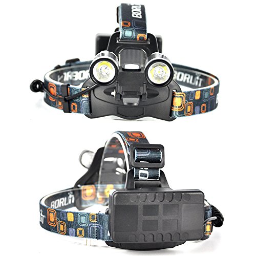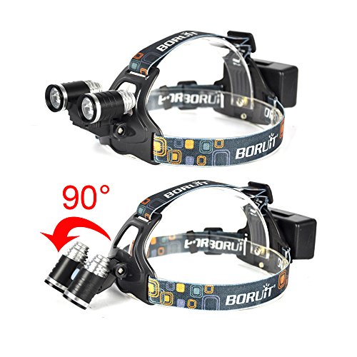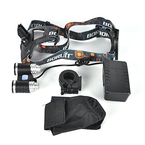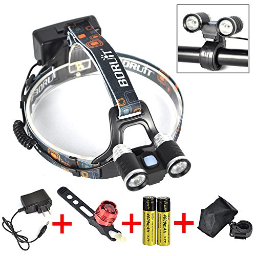 Boruit Bike Headlamp 2* CREE XM-L2 LED Rechargeable Bicycle Light 5 Modes Adjustable View Angle with Taillight & 2*18650 Rechargeable Battery + AC Charger + Bike clip for Jogging Camping Hiking