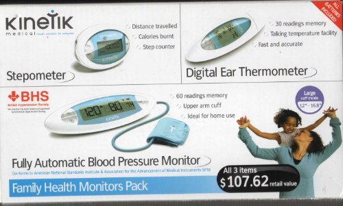-. Title : Kinetik Family Monitor Pack Upper Arm Automatic Blood Pressure Monitor, Digital Ear Thermometer and Stepometer