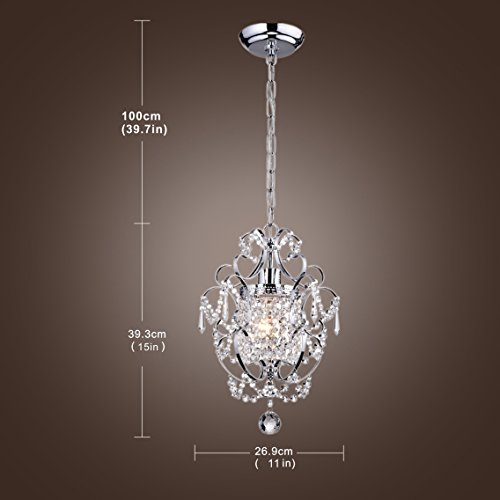 The crystals deflect the light, creating a multi-directional glow. The modern and traditional elements allow this chandelier to blend with a variety of styles. it has a 39 inch adjustable chain as well as cascading crystal garland intertwining the one light design.