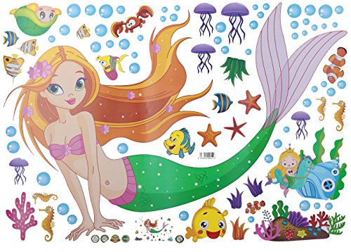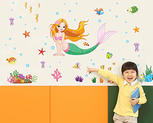 -. Title : JAXSHION Mermaid Wall Decals - Kids Baby Girl Room Nursery Wall Decor Removable Under the Sea Wall Stickers Murals