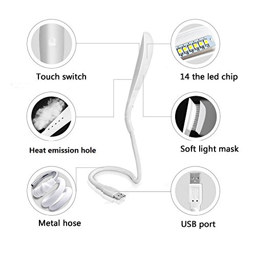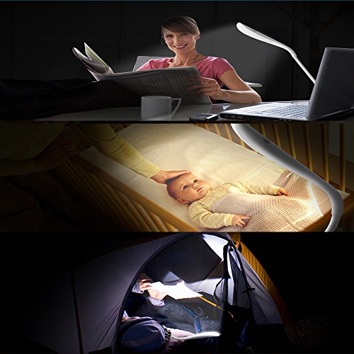 ERCRYSTO USB LED Light for Computer/Keyboard/Notebook/Laptop/PC, 3 Levels of Brightness suitable for Reading/Relaxation/Bedtime, 360 Degrees Rotation, charger included, White