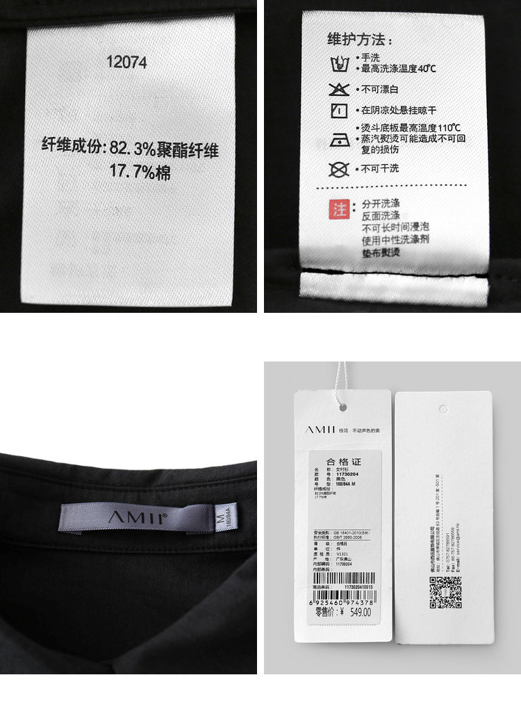 洗涤标准:不可浸泡不可漂白110℃以下垫布熨烫悬挂晾干40℃以下手洗不可干洗