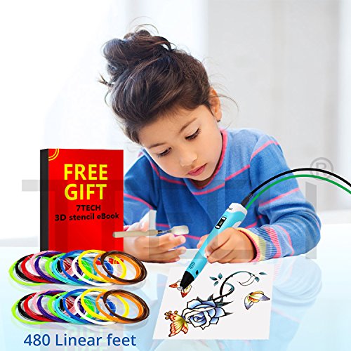 480 Linear Feet 3D Pen Filament 1.75mm ABS 100 Stencils Ebook 24 PACKS in 12 Colors Free Spatula &Glow In The Dark - by 7TECH