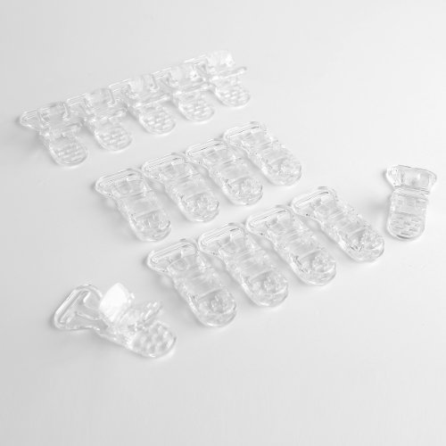 -. Binding : Baby Product -. Brand : surepromise -. Color : Clear -. EAN : 8692842160695 -. Feature : 15pcs T shaped end plastic badge clips which can be used in a variety of craft projects including making badges and dummy straps. / These clips are made so the ribbon is not twisted or snagged when a dummy clip is created / Each has a plastic insert to protect the fabric you attached to / Great for making pacifier holders, bib clips, toy holder and many additional craft items / Size: 18mm x 55mm -. IsAdultProduct : 0 -. Label : Surepromise -. Manufacturer : Surepromise -. ProductGroup : Baby Product -. ProductTypeName : BABY_PRODUCT -. Publisher : Surepromise -. Size : Large -. Studio : Surepromise -. Title : 15pcs Clear Plastic Pacifier Clip Adapter MAM Ring Soother/Dummy/Bib/Suspender/Paci/Toy Holder