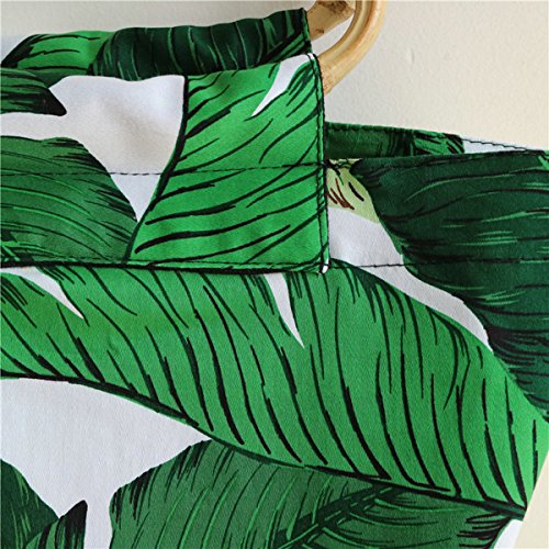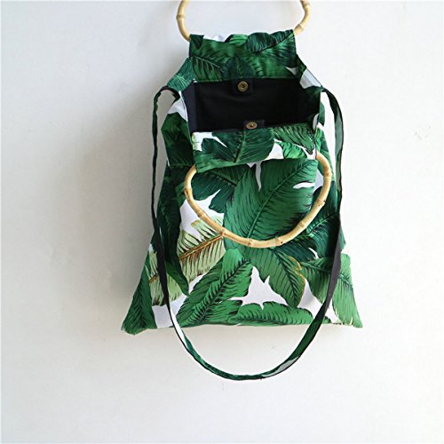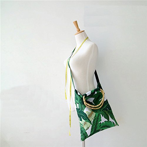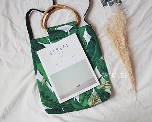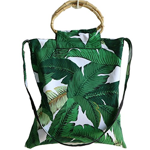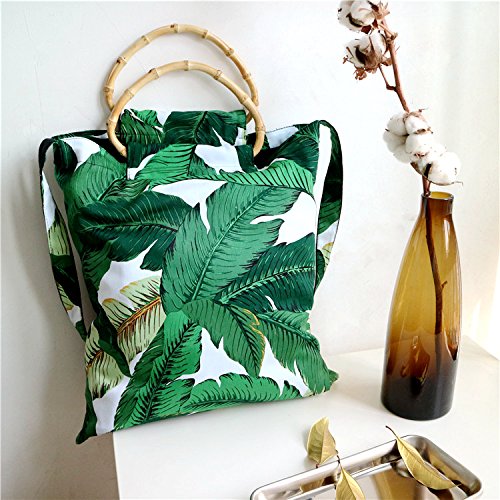 Banana Leaves Bag, Hawaii Style Women Fashion Cotton Tropical Green Leaf Handbag with Bamboo Handle Tote Purse