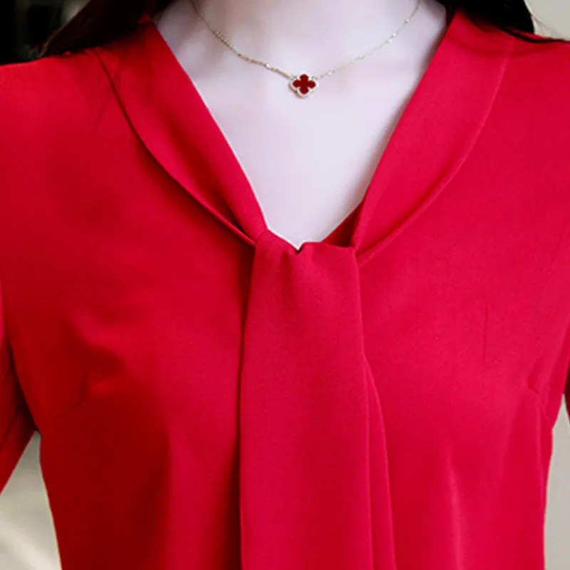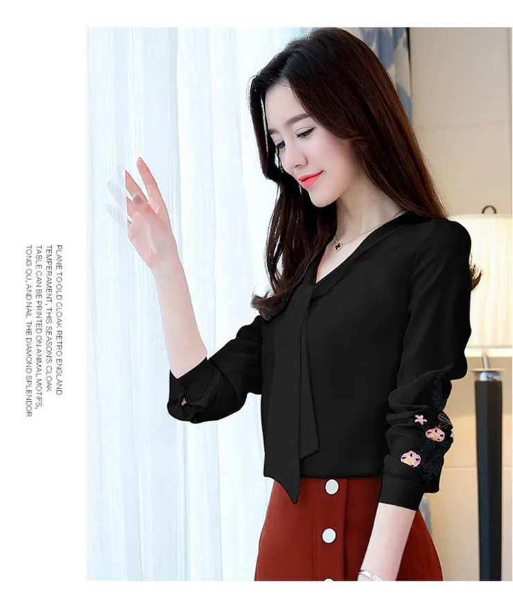 Blusa Feminina:Long Sleeve V-neck Shirt Ladies Work Wear Chiffon Blouse Femme