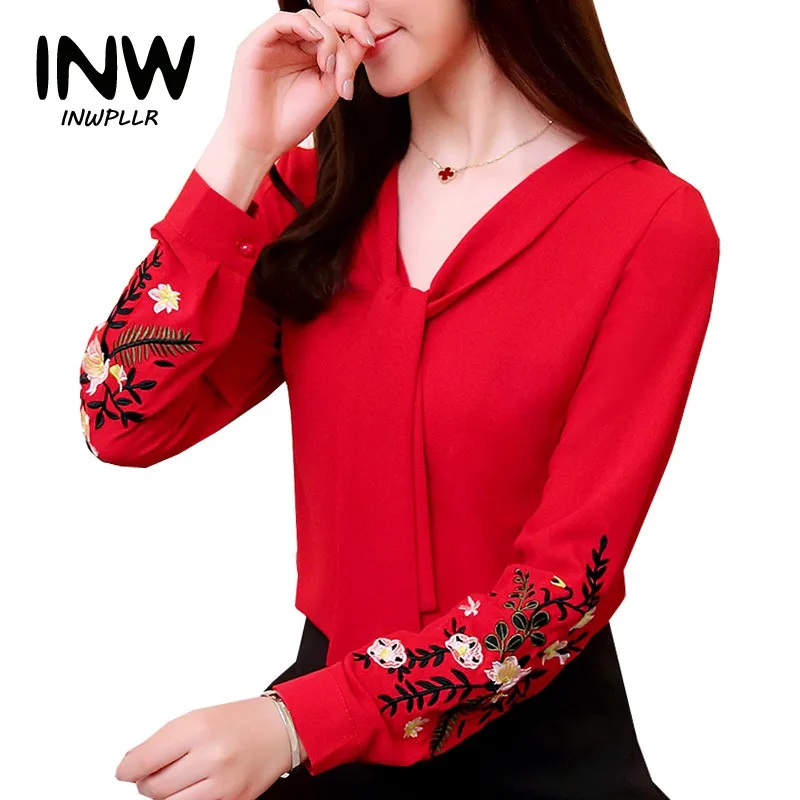 :2018 New Fashion Women Tops Embroidery Plus Size Blusas Spring