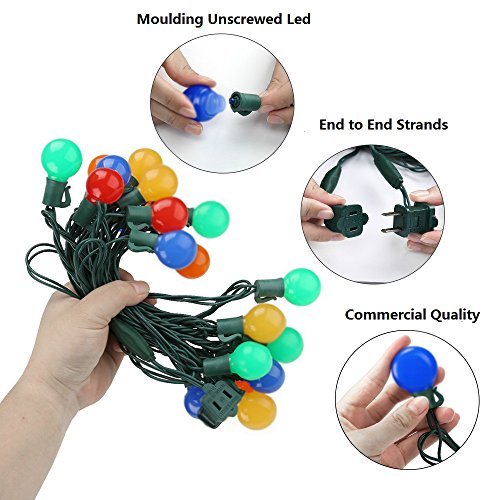 - Connective Lights Up to 40 Strands,Set of 25,Total Lenth-17Ft Green Wire,8" Spacing,G40 Globe Size-2 1/4" tall and 1 1/2" wide,Bulbs with hook design for convenient use,no need to buy other hook to set the strings.