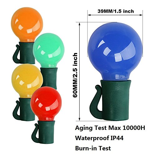 - Commercial Grade Light Set,Long Life Span,80% Energy Saving,Waterproof rate IP44,The globe housing that goes over the bulb is remove able; it screws on/off. The actual led underneath the globe does not come out,which will make these lights more waterproof and no problem when you use them in heavy rainy days.Recommend Multi and Blue,they are very festive,Warm White and Cool White look Very Pretty and Clean.