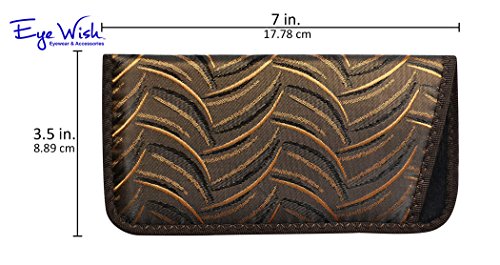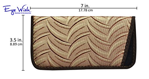 Binding : Eyewear Product Description Protect your eyewear in style with this fashionable soft slip-in eyeglass case. Each soft case features a smooth and sleek fabric woven with a modern abstract crescent pattern, available in your choice of four deep colors: Gray, Dark Brown, Purple, and Light Brown. The edges are finished with a zig-zag stitched grosgrain, giving this case added durability and a polished look. The interior of this case is lined with a soft nylon padding to protect your exensive frames and lenses from damage and scratches. Each case measures 7 inches long, 3.5 inches high and .38 inches deep. These attractive slip-in cases make a perfect gift for anyone who wears medium to large frames. Hand packed with care in Dallas, Texas. 0