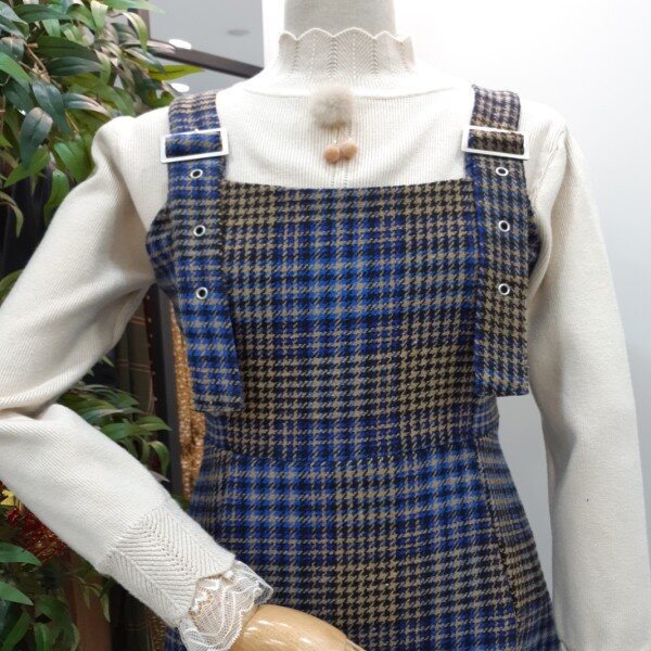 천안모다아울렛 멜로디가든?멜로디가든 체크패턴의 멜빵 원피스입니다 허리가 라인이 들어가 날씬해보이는 여성스러운 디자인의 원피스입니다 어깨멜빵을 조절해서 원피스 길이를 조절할수 있는 스타일입니다