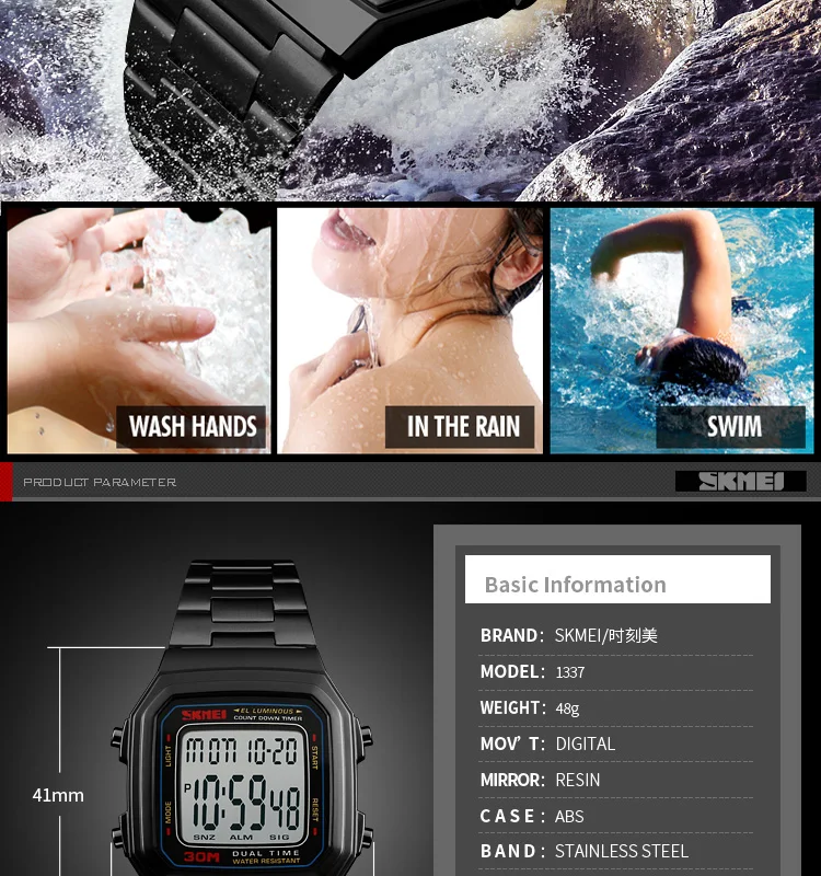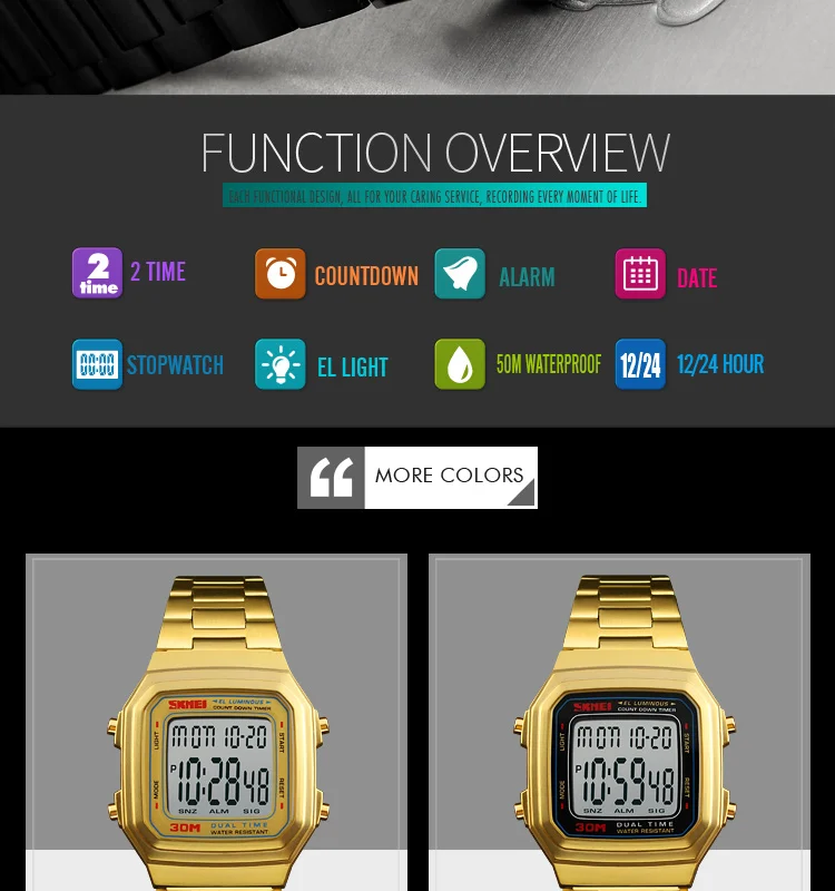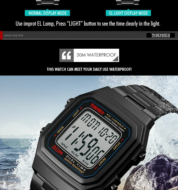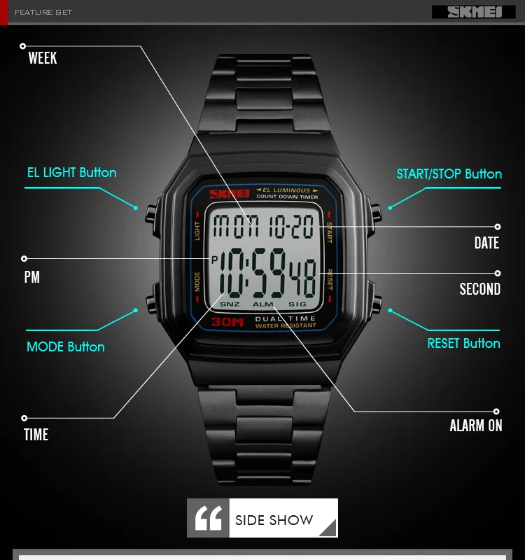Feature:Auto Date,Week Display,Water Resistant,Stop Watch,Back Light,Swim,Alarm,Repeater