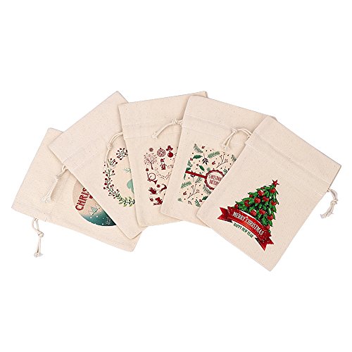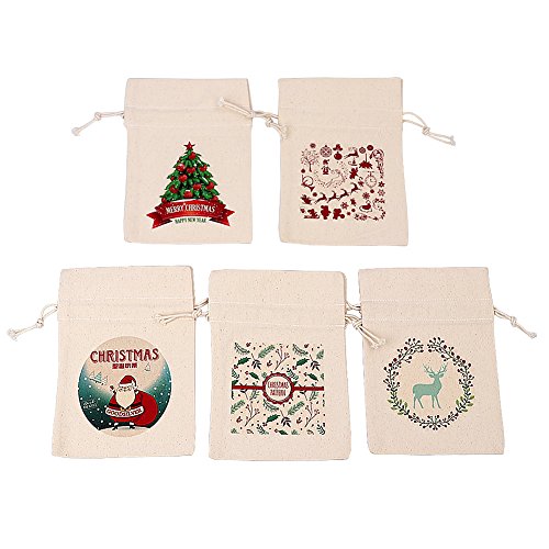 Bidlsbs Christmas Xmas Holiday Gifts Souvenir Bags Small Candy Pouch with Drawstring Bag for Christmas Present Candy Pockets, Reusable Jewelry Storage Case Coin Purse 5 Pack