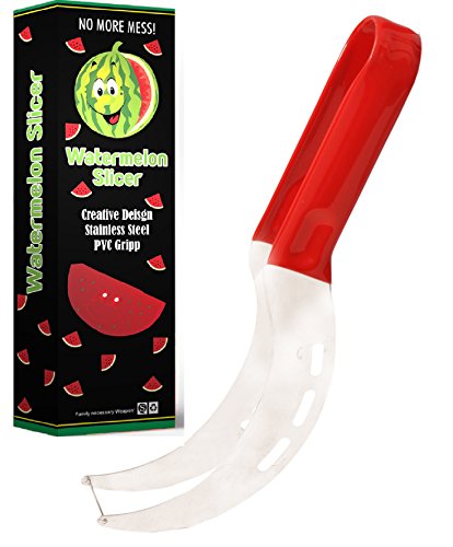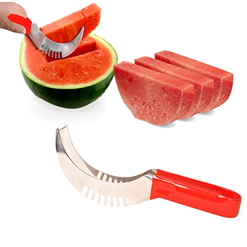 Watermelon Slicer Cutter & Server Stainless Steel non slippery Red Grip