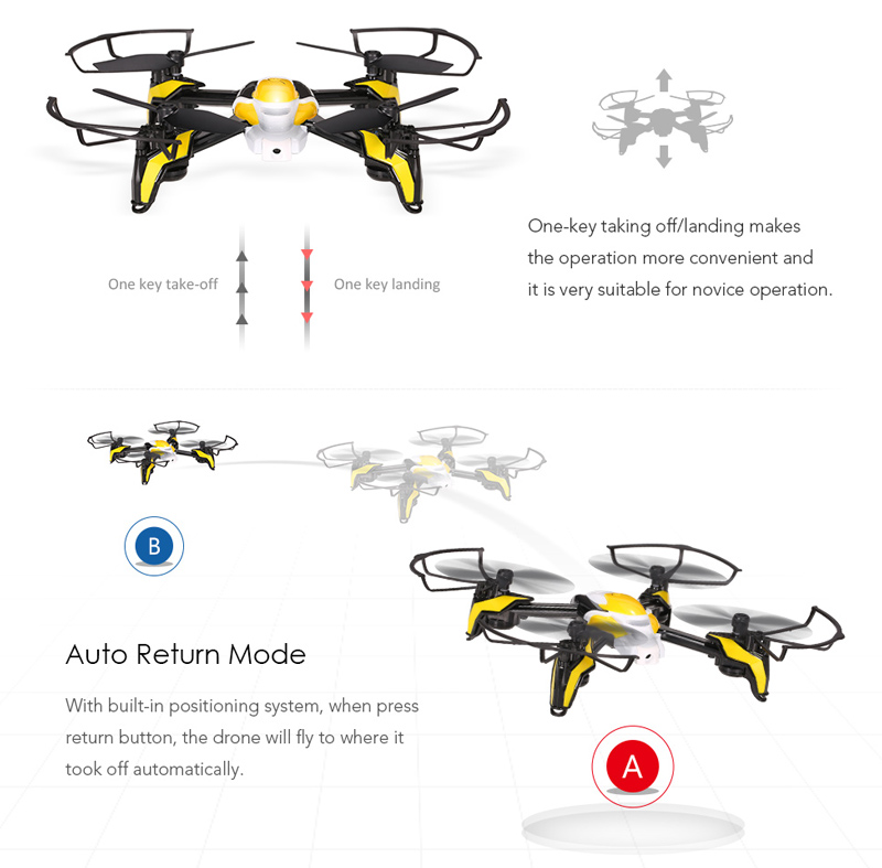 One-key taking off/landing makes the operation more convenient and it is very suitable for novice operation.